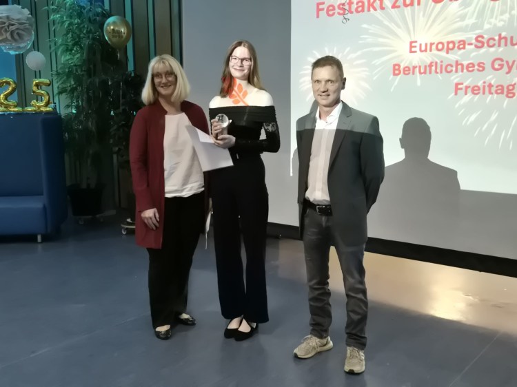 Im Jahr 2025 wurde der Alumni Ehrenpreis auf Vorschlag ihrer Mitschülerinnen und Mitschüler an Neele Wolter verliehen. Wir gratulieren zu dieser besonderen Auszeichnung. Neben der Urkunde wurde Neele der Alumni Ehrenpreispokal von der Schriftführerin und Mitinitiatorin des Alumni Vereins Kirstin Bettenhausen und unserem stellvert. Vorsitzenden Thorsten Schorisch überreicht. Die Übersicht der Alumni Ehrenpreisträger findet ihr hier.
